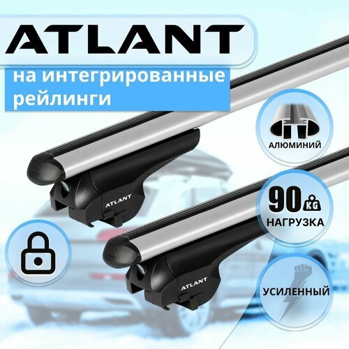 Багажник Атлант на крышу для HYUNDAI Tucson 5-дв внедорожник 2020-н. в. IV, на интегрированные рейлинги, поперечины усиленные типа аэро, 90 кг, 110 см, с замком