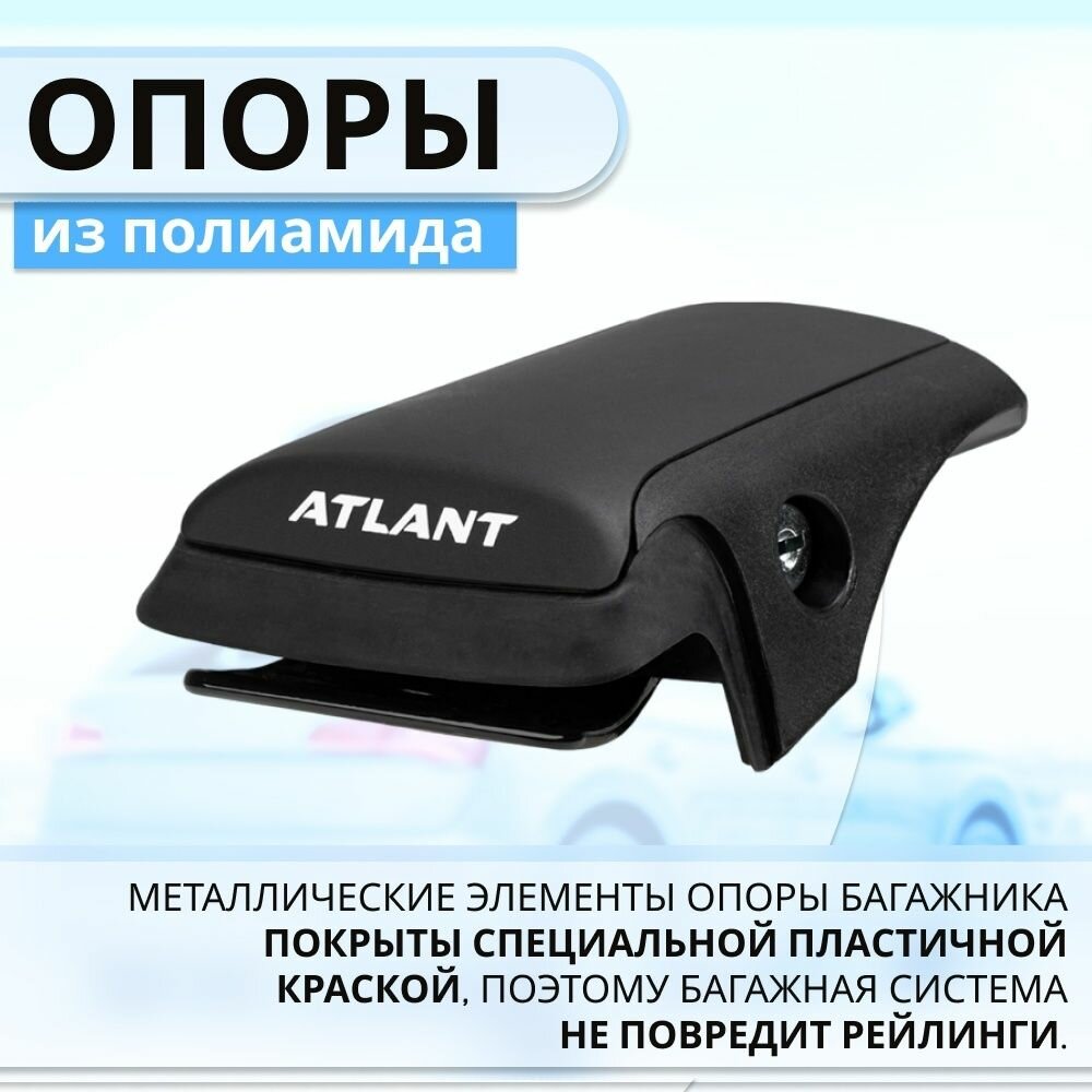 Багажная система в распор на классические рейлинги Компания ATLANT расширяет линейку багажных систем, дополняя её новым типом - багажная система в распор. Багажник обладает отличной аэродинамикой: алюминиевая анодированная дуга багажной системы имеет форму крыла и практически не возвышается над рейлингами автомобиля. Багажник ATLANT лаконично дополняет геометрию машины - автомобиль с багажной системой в распор выглядит эстетично. Простой монтаж багажной системы в распор Багажник крепится к классическим рейлингам методом зажима, а затем стягивается оцинкованным винтом - это простой и надежный способ монтажа. Багажная система в распор от ATLANT устанавливается на классические рейлинги различной высоты. Металлические элементы опоры багажника покрыты специальной пластичной краской, поэтому багажная система не повредит рейлинги. Для защиты багажника от кражи предусмотрено запирание крышек опор на ключ. Замки выполнены из нержавеющей стали и не подвержены коррозии. Личинки замков расположены с тыльной стороны опор, что уменьшает степень их загрязнения. Уплотнительная резинка позволяет максимально прижимать багажник к рейлингу, не оставляя зазоров. Эксплуатация Благодаря наличию в дуге багажной системы Т-слота, она идеальна для таких аксессуаров как крепления для велосипедов, лыж и сноубордов. Отличным решением для транспортировки на багажной системе данного типа будет автобокс с креплением «П-образная скоба». Аксессуары, установленные на багажную систему в распор ATLANT, смотрятся легко и аккуратно. Грузоподъемность Поперечины изготовлены из прочного алюминиевого сплава, а опоры из прочного АБС-пластика - выдерживают нагрузку до 75 кг. Ограничен грузоподъемностью Ваших рейлингов и крыши. Внимание! Перед использованием багажника уточняйте максимально допустимую нагрузку на кузов вашего автомобиля у производителя автомобиля. Она может отличаться от максимально допустимой нагрузки на багажник.