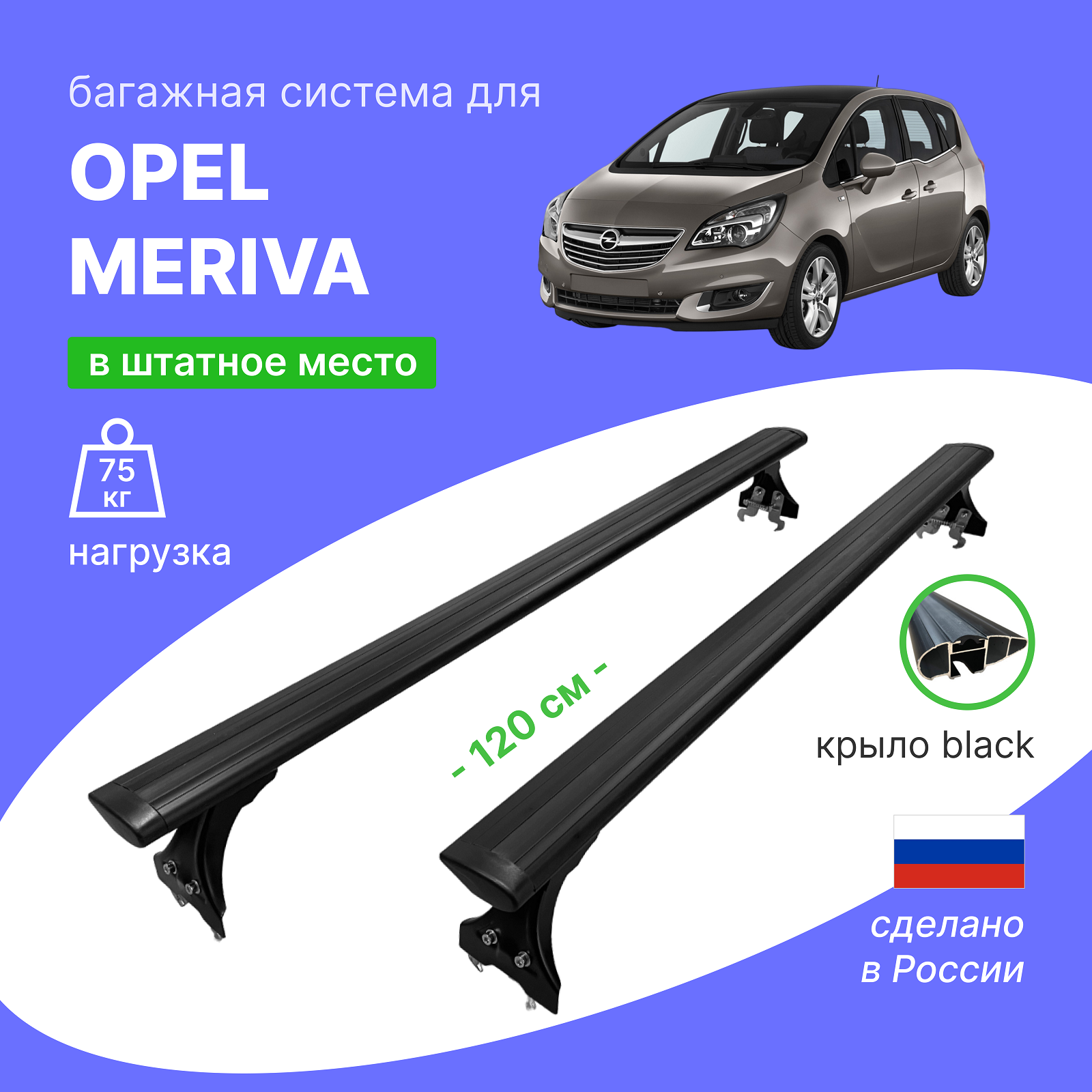- внимание! Багажная система разработана конкретно для штатных мест Opel Meriva (Опель Мерива). Просьба это учитывать.