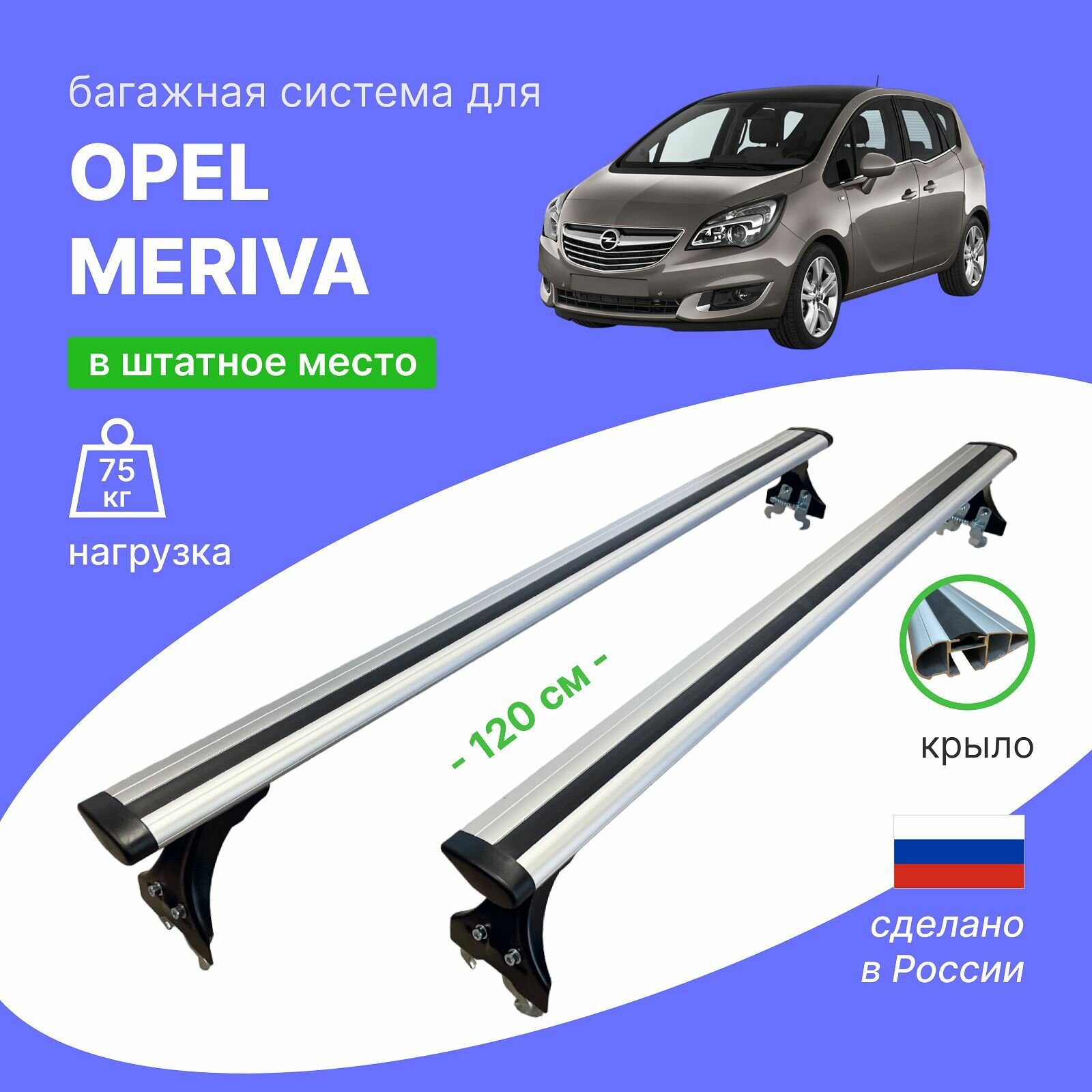 - внимание! Багажная система разработана конкретно для штатных мест Opel Meriva (Опель Мерива). Просьба это учитывать.