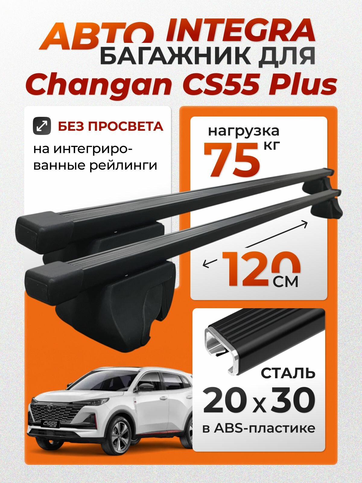 Купить Багажник для Changan CS55 Plus (Чанган CS55+) на интегрированные (без просвета) рейлинги. Integra-120 20х30 (поперечины и упоры) с доставкой по всей России. Багажник для Changan CS55 Plus (Чанган CS55+) на интегрированные (без просвета) рейлинги. Integra-120 20х30 (поперечины и упоры): сравнение цен, характеристики, фото, актуальное наличие и цены.