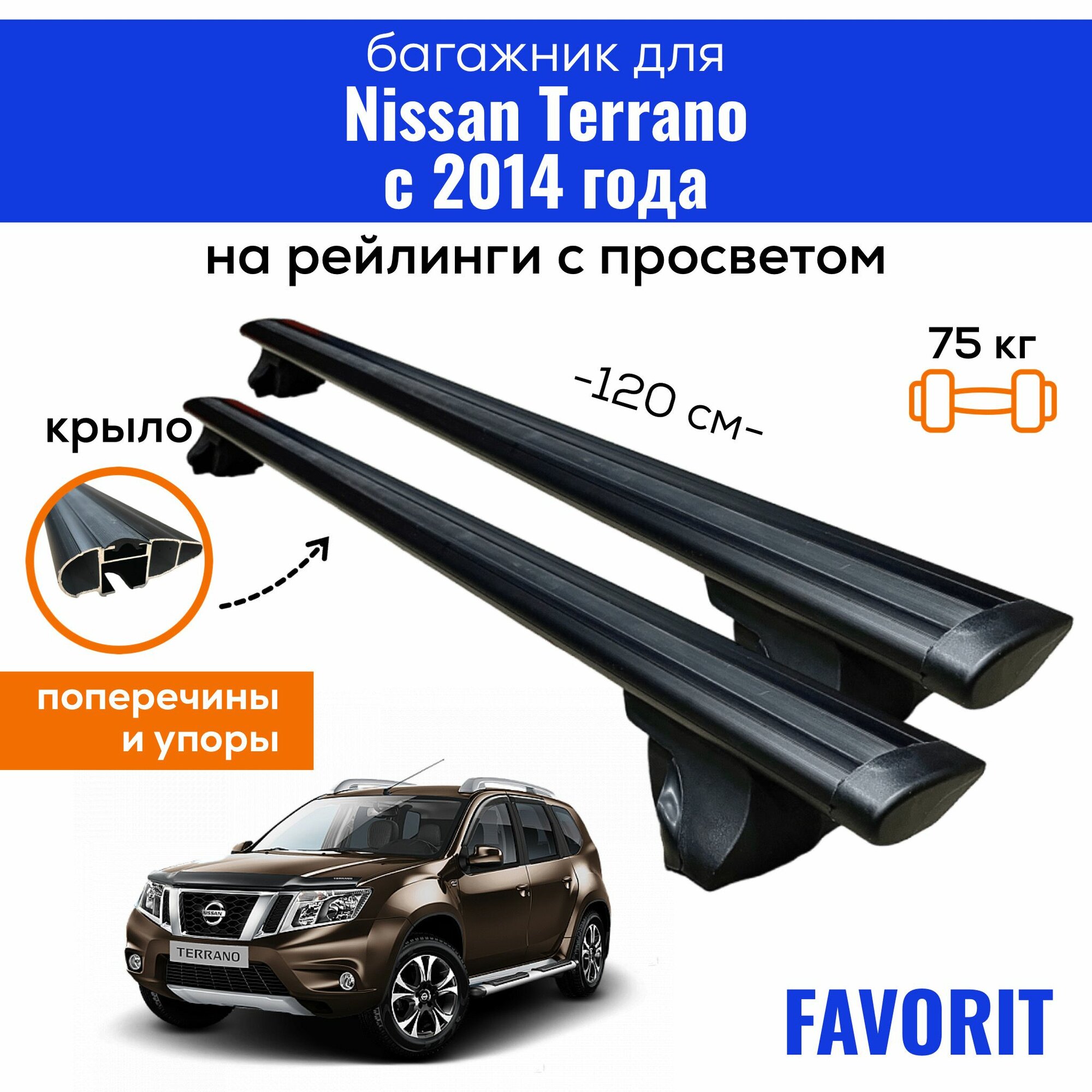 Купить Багажник для Nissan Terrano (Ниссан Террано) с 2014-года, Favorit-120 крыло Black, на рейлинги с просветом, (поперечины и упоры) с доставкой по всей России.