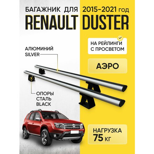 Купить Багажник для Renault Duster (Рено Дастер) с 2015-2021 год на рейлинги с просветом, аэро (поперечины серебристые, опоры черные) с доставкой по всей России. Багажник для Renault Duster (Рено Дастер) с 2015-2021 год на рейлинги с просветом, аэро (поперечины серебристые, опоры черные): сравнение цен, характеристики, фото, актуальное наличие и цены.
