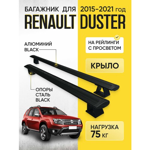 Купить Багажник для Renault Duster (Рено Дастер) с 2015-2021 год на рейлинги с просветом, Крыло Black (поперечины и опоры черные) с доставкой по всей России. Багажник для Renault Duster (Рено Дастер) с 2015-2021 год на рейлинги с просветом, Крыло Black (поперечины и опоры черные): сравнение цен, характеристики, фото, актуальное наличие и цены.