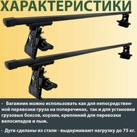 Багажная система Inter "D-1" - предназначен для автомобилей с гладкой крышей за дверной проём. *Хотим обратить Ваше внимание, что данная багажная система является универсальной, она легко устанавливается за дверной проём автомобиля. Подходит на большинство автомобилей. Багажник прост в установке, имеет надежную конструкцию. *Данная багажная система для автомобилей с гладкой крышей состоит из 4-х опор и 2-х поперечных дуг: Металлические опоры багажника D-1 выполнены из стали и обеспечивают хорошую фиксацию. Багажник быстро и просто собирается. Для установки Вам потребуется ключ для затяжки. - Стальные дуги прямоугольного сечения 20х30 мм поверхность поперечины покрыта пластиком (ABS) в торцах имеют пластиковые заглушки. Заглушки закрывают торец дуги. Заглушки садятся плотно. Стальные дуги не подвержены коррозии - Овальные/крыловидные аэродинамические поперечины багажника изготовлены из алюминиевого профиля. Поверх дуги по всей ее длине проходит противоскользящая резинка, торцов пластиковые заглушки их рекомендуется дополнительно при монтаже проклеить или зафиксировать. Нижний паз поперечин закрывается уплотнителем между опорами и от опоры до края. *внимание! Если не часто снимаете багажник, советуем заглушки посадить на герметик. Про шумность: Практически любая багажная система будет создавать аэродинамические шумы. Все зависит от шумоизоляции Вашей крыши, толщины стекол автомобиля, как установлены поперечные дуги, сдвинуты сильно вперед или ближе к центральной стойки, Вашего слуха. Все это сильно влияет на шумность. Производитель не заявляет и не гарантирует полную и исключительную тишину при использовании данной багажной системы, все очень индивидуально и зависит от многих факторов. Просьба это учитывать и иметь ввиду при заказе. *Багажная система предназначена для перевозки груза. После перевозки груза, производитель рекомендует снять ее, помыть и положить на хранение. Максимальная скорость автомобиля с грузом на крыше ограничена 110 км/час. *Рекомендуемая грузоподъемность: до 75 кг.