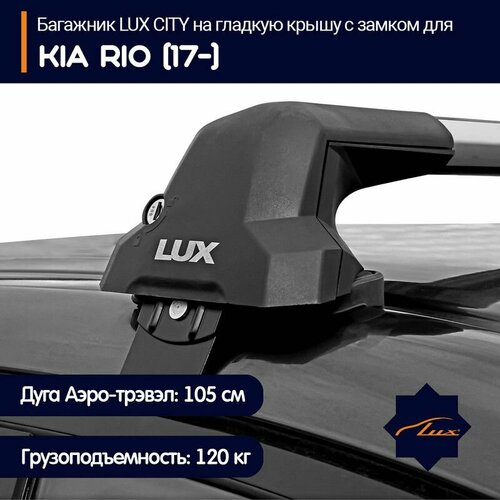 Автобагажник Люкс (Lux) CITY на крышу представляет собой две дуги-поперечины, которые крепятся на крышу Kia Rio (2017-) с помощью специальных опор и крепежных элементов.