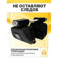 Места соприкосновения лап крепления с рейлингами изолированы эластичным прорезиненным материалом - через резиновые подкладки, предохраняющие поверхность от механических повреждений при использовании багажника и обеспечивающие идеальное прилегание.