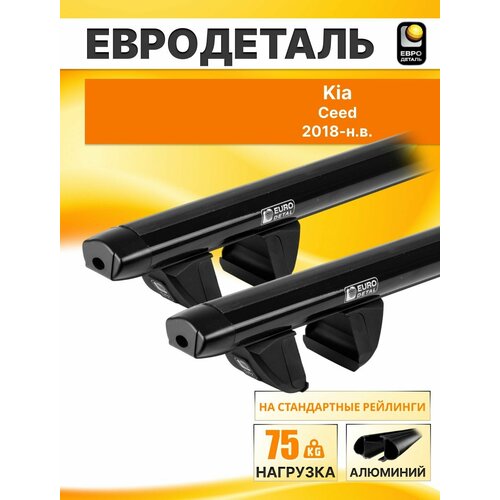 Купить Багажник на крышу Киа Сид 2018- (III) универсал / Kia Ceed Комплект креплений на рейлинги с черными овальными поперечинами / Автобагажник Евродеталь «Compact» с доставкой по всей России.