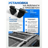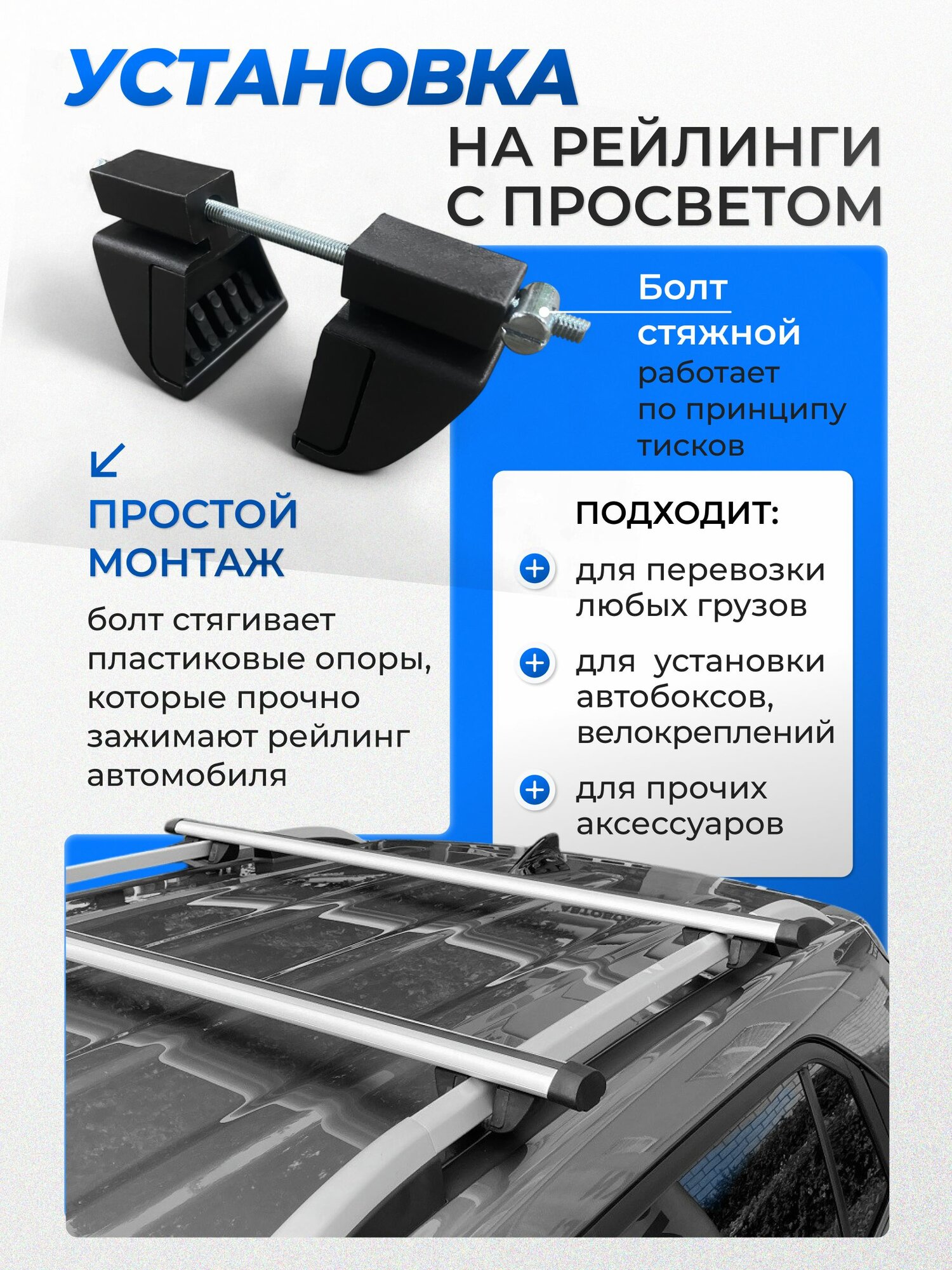 Так же хотим обратить Ваше внимание, что данная багажная система является универсальной, она не учитывает индивидуальные особенности и сечения рейлингов разных автомобилей. Рейлинги с просветом имеют разную толщину, сечение, ширину. Производитель данной багажной системы выбрал золотую середину и выполнил упоры которые перекрывают практически все возможные варианты.