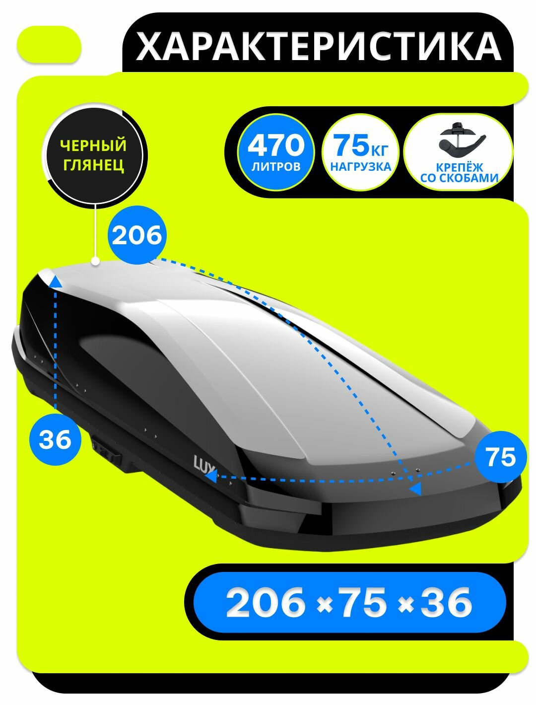 Автобокс на крышу LUX IRBIS 206, 470л, черный глянцевый, 206х75х36: сравнение цен, характеристики, фото, актуальное наличие и цены.