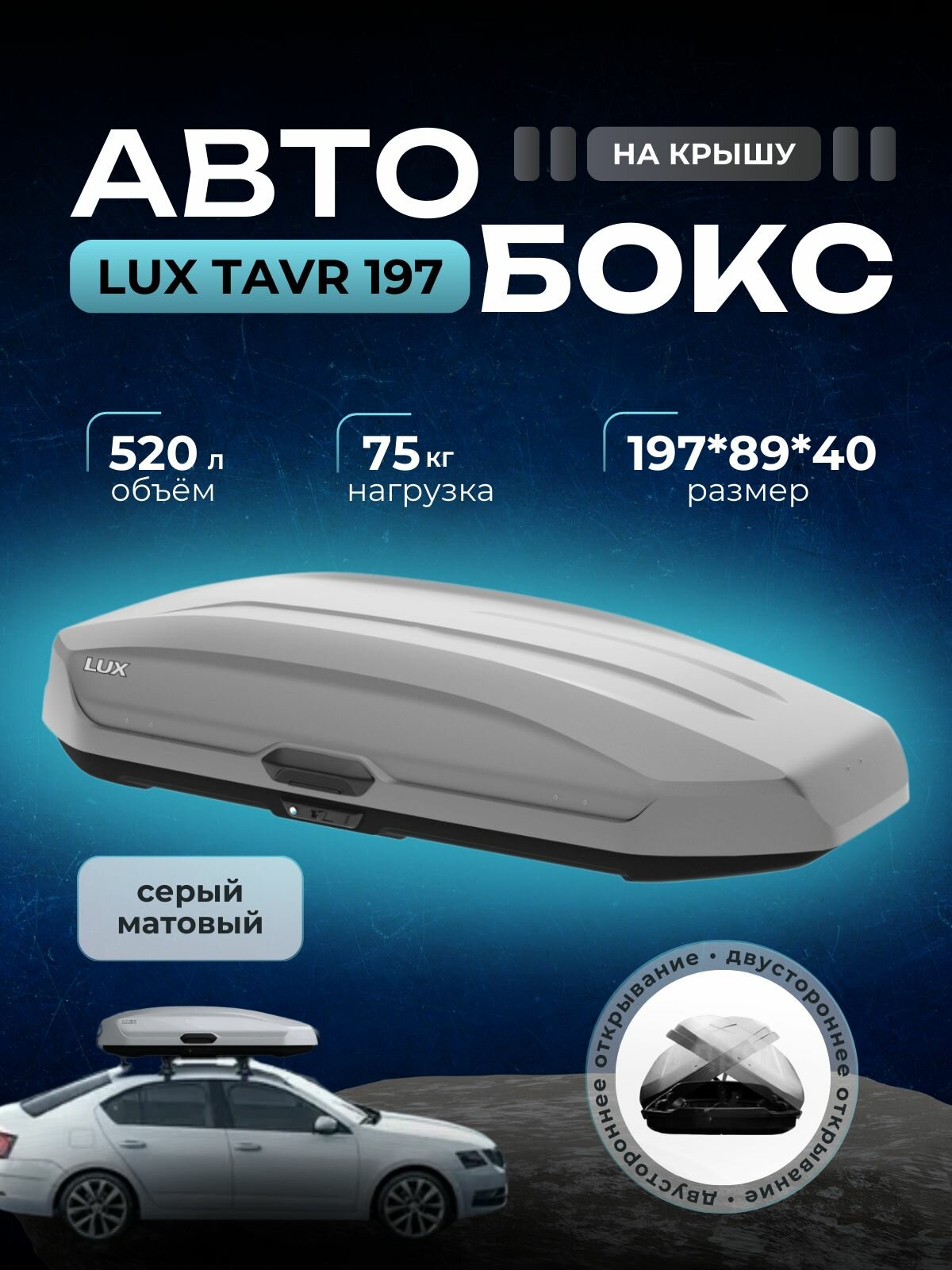 Автобокс на крышу LUX TAVR 197 серый матовый 520 литров, с двусторонним открытием/ Бокс на крышу Люкс Тавр 197 (1970х890х400 мм): сравнение цен, характеристики, фото, актуальное наличие и цены.