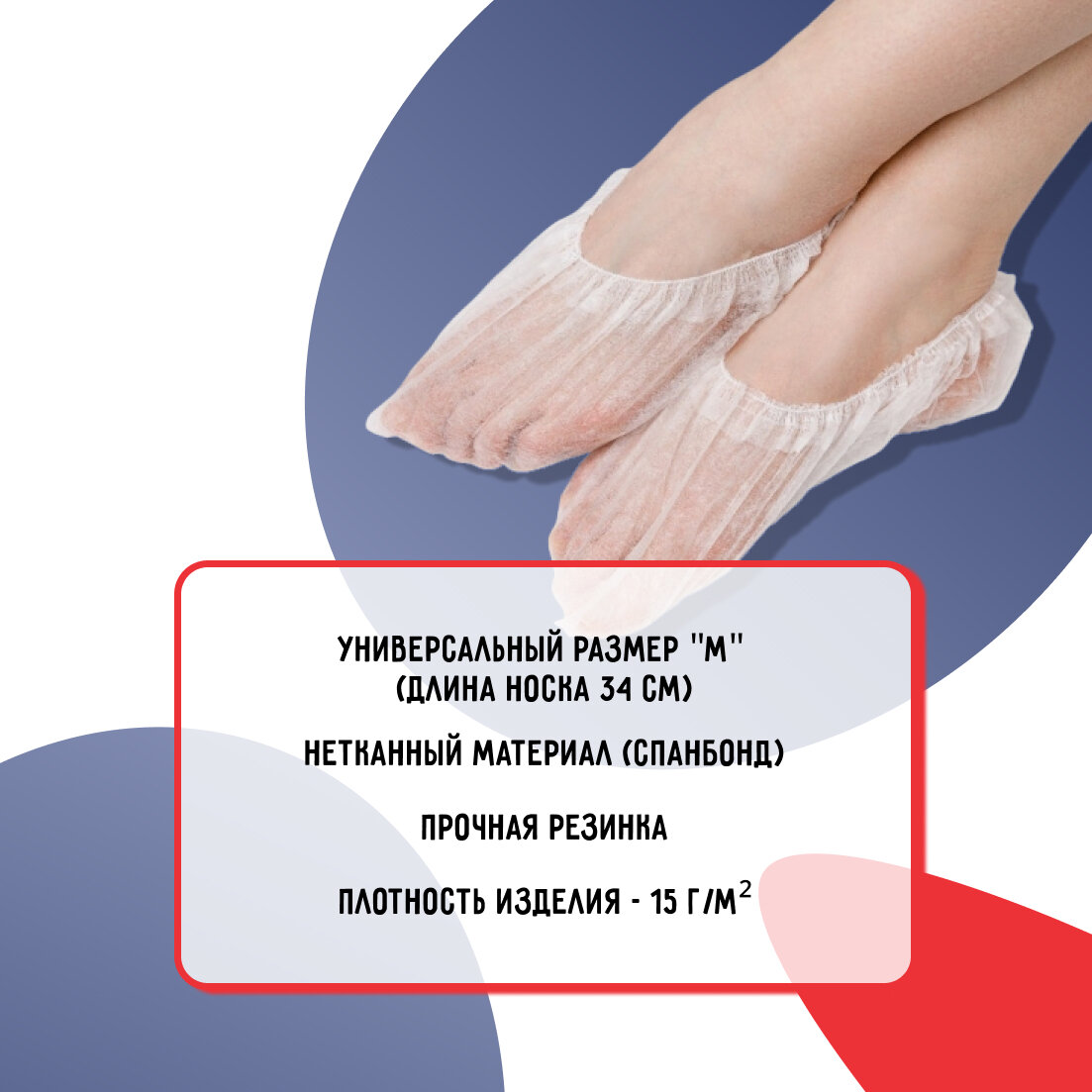 Бахилы одноразовые 2000 шт (т. е. 1000 пар) представляют собой идеальное решение для обеспечения комфорта в медицинских учреждениях и салонах красоты при проведении различных процедур. Отлично подходят для соблюдения личной гигиены при использовании в местах проката обуви, идеальны для боулинга и дома. Материал — высококачественный спанбонд. Легкие и удобные белые нетканые носки-бахилы незаменимы при повседневном использовании. Фиксацию на ноге обеспечивает прочная резинка. Она защищает от попадания влаги внутрь, надёжно держит и не даёт соскользнуть изделию с ноги. Одноразовые бахилы-носки производятся в универсальном размере "М" (длина носка — 34 см). Плотность изделия - 15 г/м. кв. Внимание! Индивидуальная упаковка для каждой пары НЕ предусмотрена.
