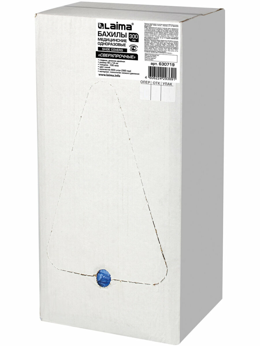 Купить Бахилы одноразовые для обуви Комплект 600 шт. (300 пар), Сверхпрочные, двойная резинка, 40х14 см, 100 мкм, 10 г, Laima, 630719 с доставкой по всей России.