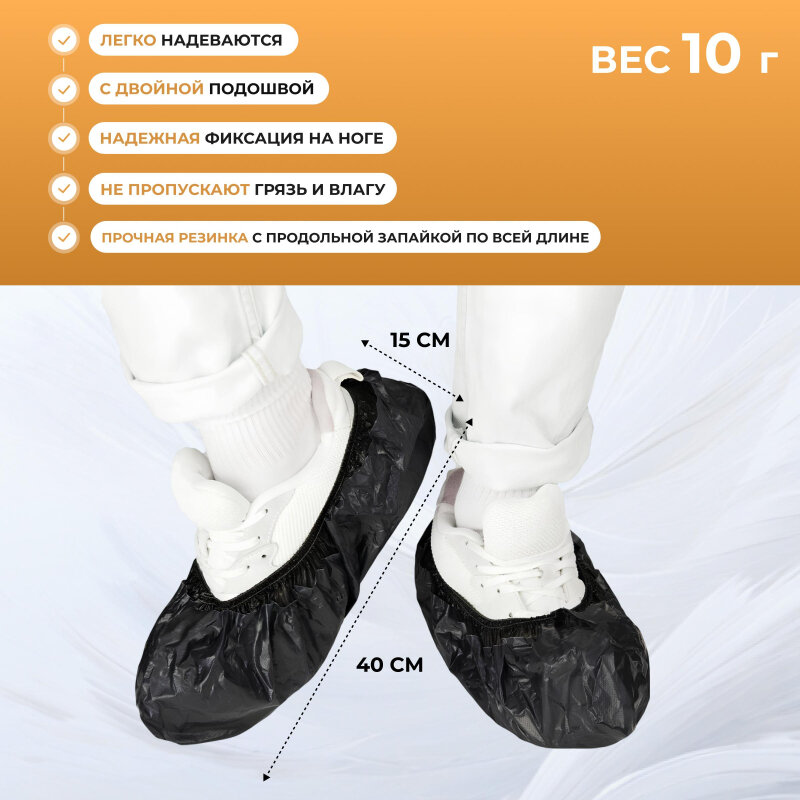 Бахилы п/э Elegreen, ГПЭГЦЧ-100/Н20, с 2-ой рез, двойные, черные,10гр,300пар/уп: сравнение цен, характеристики, фото, актуальное наличие и цены.