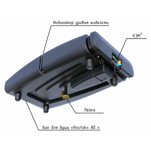 Бак для душа Росток (ЭкоПром) цельнолитой с дополнительной опорой (для более устойчивого размещения на душевых кабинах Росток и других), производятся на крупнейшем заводе в России, из пищевого морозостойкого полиэтилена, может храниться на улице даже при сильно отрицательных температурах