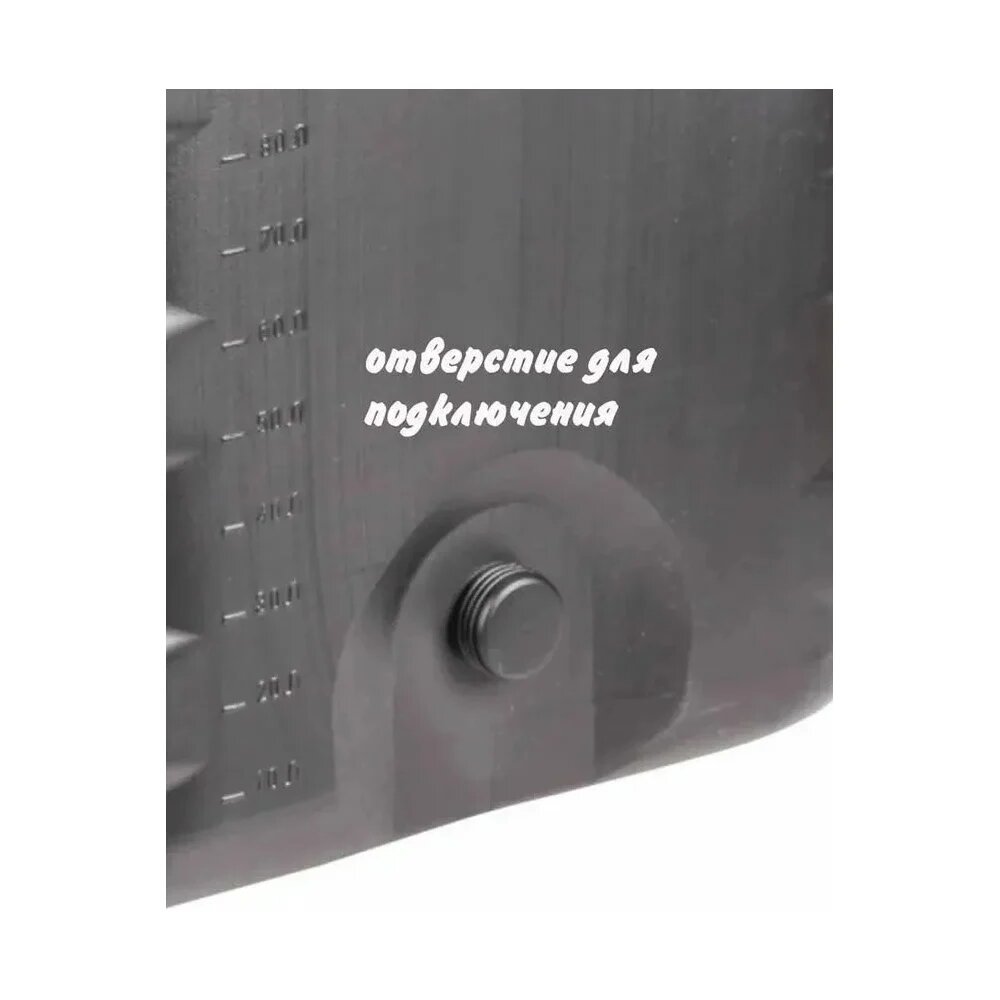 Бак выполнен из качественных полимеров, устойчив к солнечным лучам, влаге и перепадам температур. Благодаря большой горловине в него удобно наливать воду, также сбоку расположено место для слива на которое можно самостоятельно установить кран М1706. На стенке изделия есть специальная шкала для определения уровня воды.