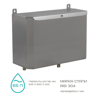Бак для теплообменника для бани Сталь Мастер, выносной горизонтальный 65 л. - современная стильная линейка баков для бани, выделяется своим привлекательным дизайном, нержавеющей сталью AISI 304 толщиной 1 мм, особая форма и рёбра жёсткости повышают прочность изделия. Применение нержавеющей стали и метода сварки в среде аргона с присадкой повышают устойчивость к коррозии в агрессивной среде. Металлическая емкость из нержавеющей стали предназначена для использования в бане. Она является удобным и выносным резервуаром, который можно установить в парной или моечном помещении. Благодаря этой емкости, запас горячей воды всегда будет под рукой для комфортного пребывания в бане. Бак может использоваться совместно с теплообменником для более эффективного нагрева воды. Бак для воды металлический из нержавейки идеально подходит как для каменки бани, так и для парной – его удобно разместить на печи или трубе. Устройство баков несложное: сверху имеется заливная горловина, в дне 2 штуцера G3/4, посредством которого вода может сливаться, заливаться, и переливаться в случае необходимости. Бак имеет 2 крепёжных «уха», на задней стенке, индивидуальное крепление с помощью, которого может быть установлен на стену. Высота 400 мм. Ширина 600 мм. Глубина 245 мм. Объем бака 65 л. Масса 5,5 кг. Выносной бак для бани станет надежным и эффективным решением для обеспечения горячей водой на долгие годы. Сделайте выбор в пользу качества и эффективности!