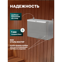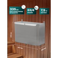Бак для теплообменника для бани Сталь Мастер, выносной горизонтальный 85 л. - современная стильная линейка баков для бани, выделяется своим привлекательным дизайном, нержавеющей сталью AISI 304 толщиной 1 мм, особая форма и рёбра жёсткости повышают прочность изделия. Применение нержавеющей стали и метода сварки в среде аргона с присадкой повышают устойчивость к коррозии в агрессивной среде. Металлическая емкость из нержавеющей стали предназначена для использования в бане. Она является удобным и выносным резервуаром, который можно установить в парной или моечном помещении. Благодаря этой емкости, запас горячей воды всегда будет под рукой для комфортного пребывания в бане. Бак может использоваться совместно с теплообменником для более эффективного нагрева воды. Бак для воды металлический из нержавейки идеально подходит как для каменки бани, так и для парной – его удобно разместить на печи или трубе. Устройство баков несложное: сверху имеется заливная горловина, в дне 2 штуцера G3/4, посредством которого вода может сливаться, заливаться, и переливаться в случае необходимости. Бак имеет 2 крепёжных «уха», на задней стенке, индивидуальное крепление с помощью, которого может быть установлен на стену. Высота 440 мм. Ширина 667 мм. Глубина 300 мм. Объем бака 85 л. Масса 7,5 кг. Выносной бак для бани станет надежным и эффективным решением для обеспечения горячей водой на долгие годы. Сделайте выбор в пользу качества и эффективности!