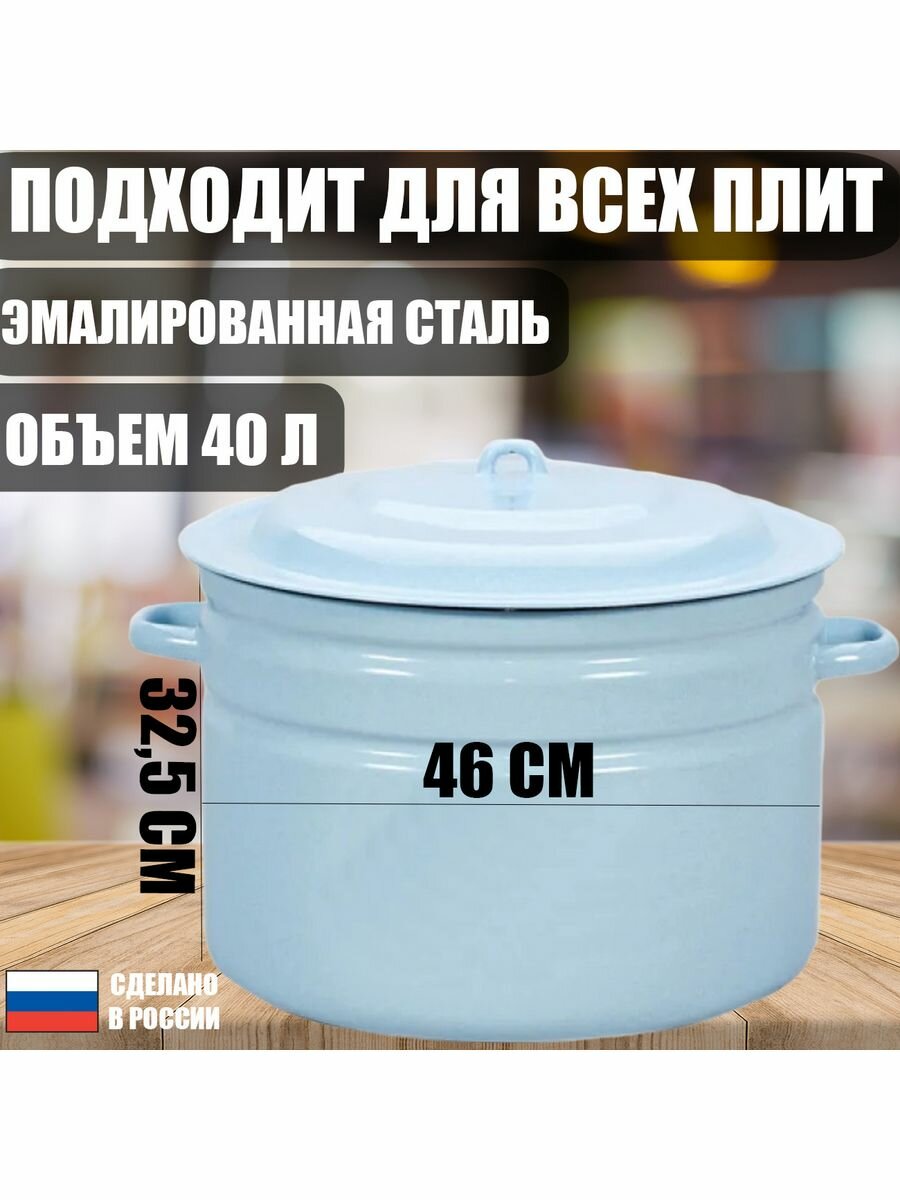 /Важно: технология окрашивания изделия, представляет собой окрашивание на иголках, поэтому на дне изделия с внешней стороны остаются точки и выемки что не является производственным браком - а лишь особенностью завода изготовителя./Усовершенствованное эмалевое покрытие, нанесенное в два слоя./Посуда легка в уходе, моется любыми моющими средствами./Подходит как для приготовления, так и для хранения продуктов./Можно использовать на всех видах плит: газовых, электрических, стеклокерамических, индукционных./Можно мыть в посудомоечной машине./Материал: Эмалированная сталь/Объем, л: 40/Вес,кг: 5570/Диаметр,мм: 46/Высота,мм: 32,5/