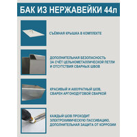 Бак из нержавеющей стали AiSi430 с крышкой, объем 44 литра, сгон по центру: сравнение цен, характеристики, фото, актуальное наличие и цены.