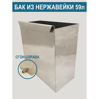 Бак для воды, объем 59 л. Идеальное решение для дома, дачи и бани. Бак изготовлен из высококачественной нержавеющей стали AISI 430 (08Х17), толщина металла 1 мм. Сгон с наружной резьбой ¾ дюйма расположен справа.