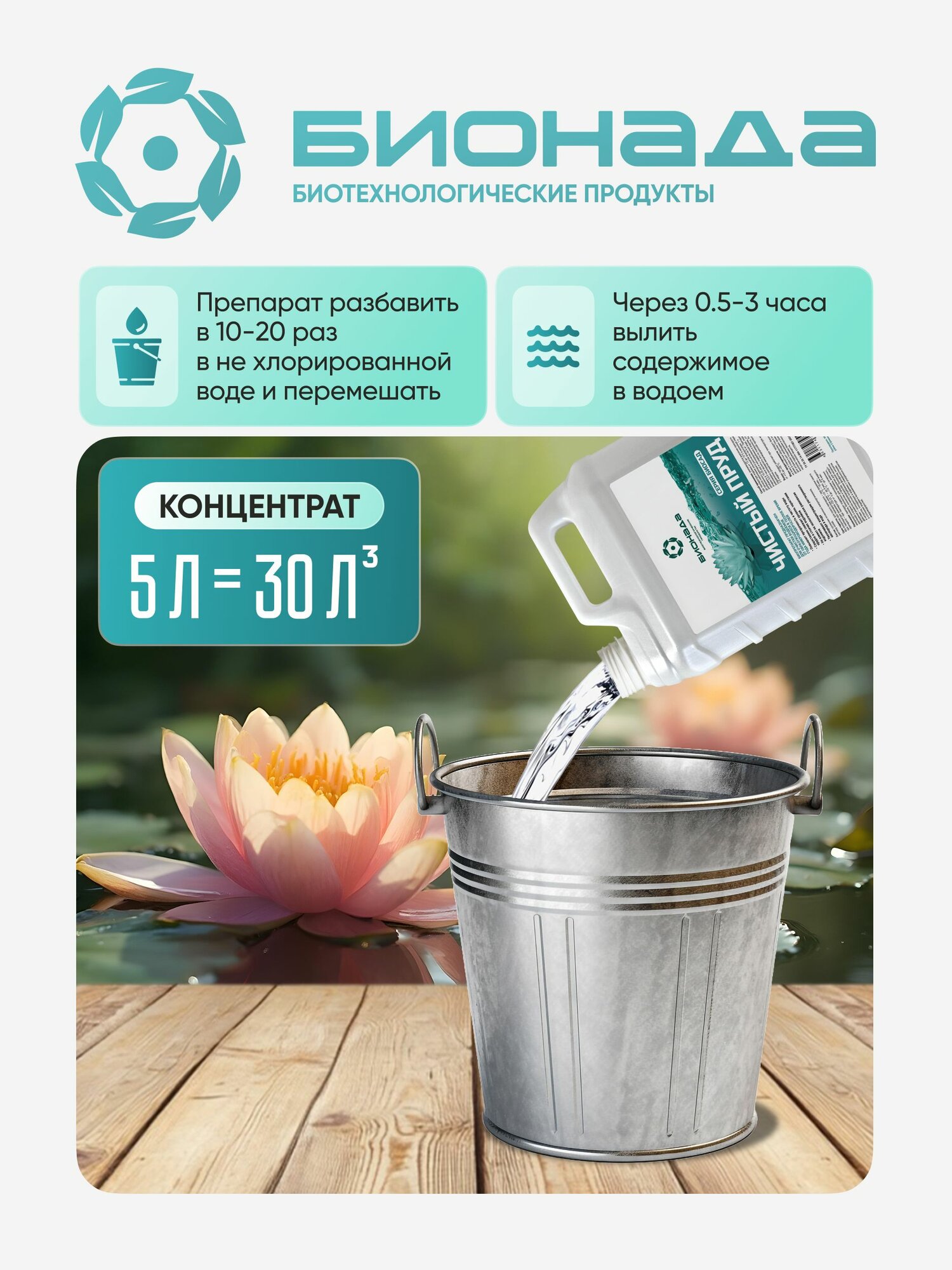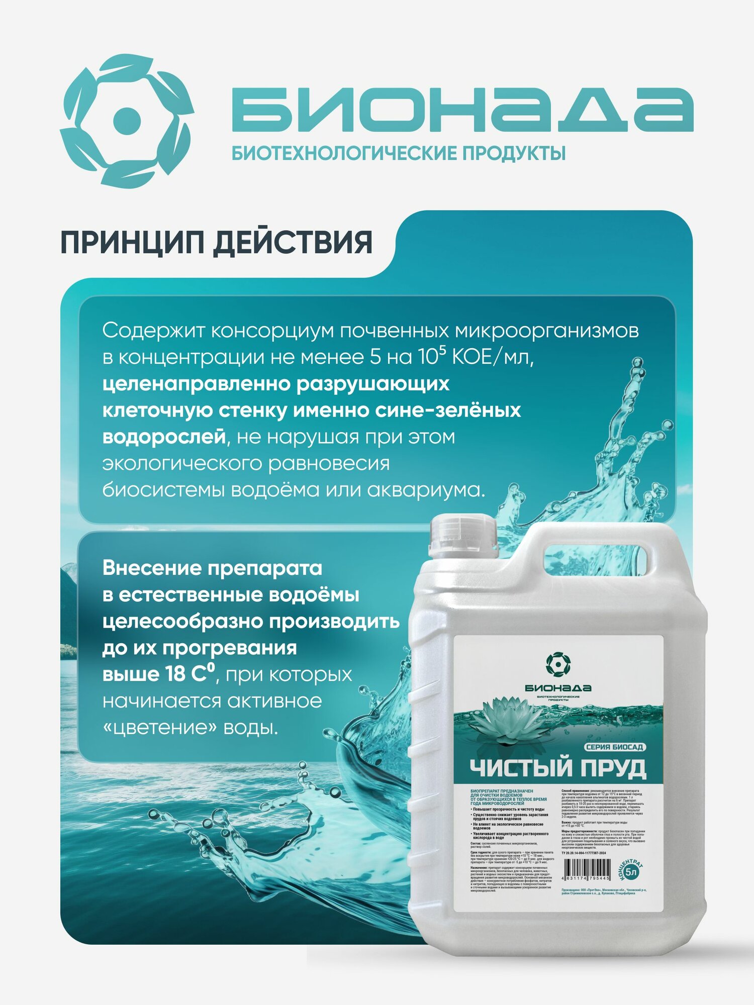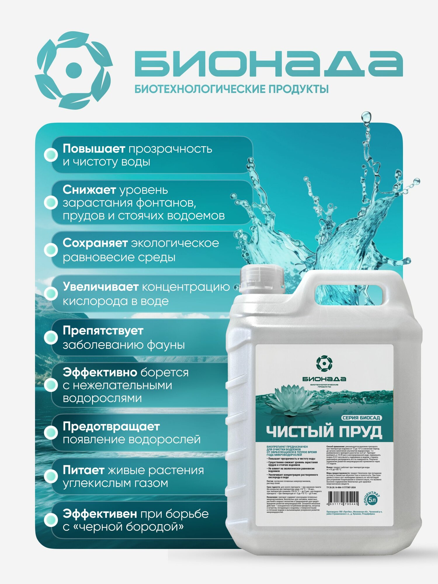 Бактерии для прудов, средство для очистки водоемов Чистый Пруд бионада, 5л: сравнение цен, характеристики, фото, актуальное наличие и цены.