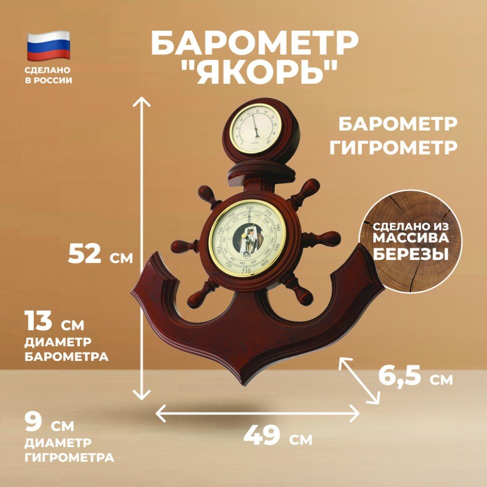 Купить Балаково Настенный барометр «Якорь» с гигрометром (52 см) с доставкой по всей России.
