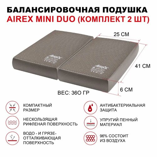 Балансировочная подушка AIREX Balance-pad Mini Duo 41х25х6 см, 2 шт, серый: сравнение цен, характеристики, фото, актуальное наличие и цены.