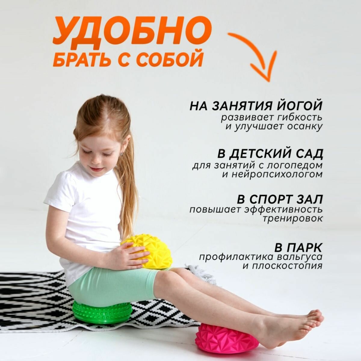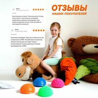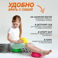 Набор балансиров - в комплекте 8 балансировочных полусфер разного цвета. Диаметр массажных подушек с шипами 16 см и высота 8 см. Полусферы выдерживают нагрузку до 150 кг и каждая упакована в индивидуальную упаковку. Одна из сторон полусферы заменяет ортопедический коврик с шипами, а 2-я сторона отличный фитнес балансир с гладкой поверхностью. Подушки сделан из безопасной ПВХ резины прекрасно подходит для занятий дома, на улице или в тренажерном зале. Многие педиатры, ортопеды, неврологи рекомендуют ходить для профилактики плоскостопия и косолапости. С помощью этих массажных полусфер можно научится держать равновесие, улучшить координацию движений, а также тренировать ловкость. Взрослые используют полусферы-балансиры для массажа стопы, а так же для занятий фитнесом. Кочки с шипами стимулируют нервные окончания, а также улучшают кровообращение. Замечательный нейротренажер и, одновременно, ортопедический коврик. Спортивные игры с ней развивают мышечный корсет, способствуют формированию правильной осанки, укрепляют вестибулярный аппарат.