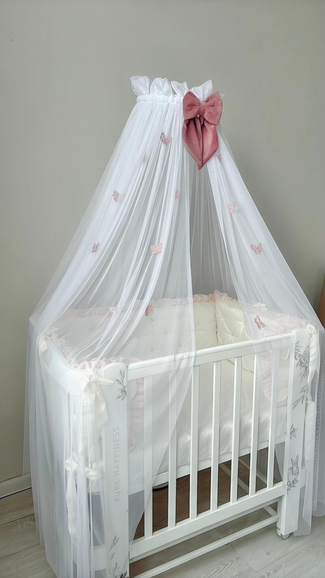 Балдахин длинный из фатина белый (белоснежный) цвета, объемный, 180*600 см с бабочками и бантом: сравнение цен, характеристики, фото, актуальное наличие и цены.