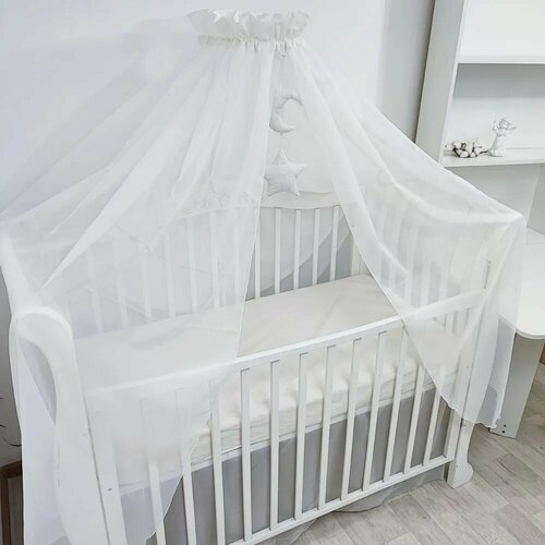 Балдахин из 100% хлопка – бязь, поплин, перкаль. Балдахин позволит защитит малыша от сквозняка, яркого света и насекомых, закрыв всю кроватку (размер 150*400). Материал легко пропускает воздух и при этом соберёт на себя всю пыль, а не осядет в кроватку. Балдахин создаст уют и комфорт для малыша, оградив от посторонних красок, звуков. Держатель для балдахина в комплект не входит