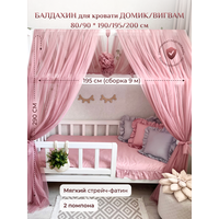 Балдахин с помпонами из мягкого, нежного стрейч фатина (не путать с жестким еврофатином) отличается изысканным дизайном, поможет создать в детской комнате легкую атмосферу уюта и красоты. Балдахин фиксируется с помощью текстильных лент крепления к боковой перекладине кроватки-домика. Состав: стрейч фатин (мелкая сетка). Размер L: длина 2.90 м, ширина 1.95 м (9м в сборке - 6 полос по 1,5 метра шириной). Подойдет для кроватей со спальным местом 80/90 * 190/195/200 см. Рекомендации по уходу: ручная или машинная стирка, деликатный режим, 30С, на минимальных оборотах отжима. Гладить на низких температурах или отпаривание.