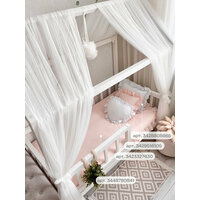 - Легкость в уходе: Этот балдахин можно стирать как вручную, так и в стиральной машине на деликатном режиме (30°C) с минимальными оборотами отжима. Для глажки рекомендуется использовать низкие температуры или отпариватель.