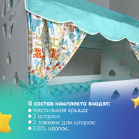 Балдахин с крышей и шторками на детскую кроватку домик, поплин, 100% хлопок, крыша на кровать домик 80х160, цвет бирюзовый с жирафиками: сравнение цен, характеристики, фото, актуальное наличие и цены.