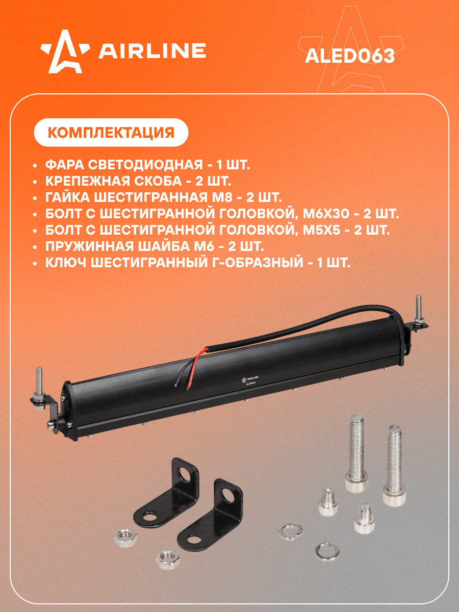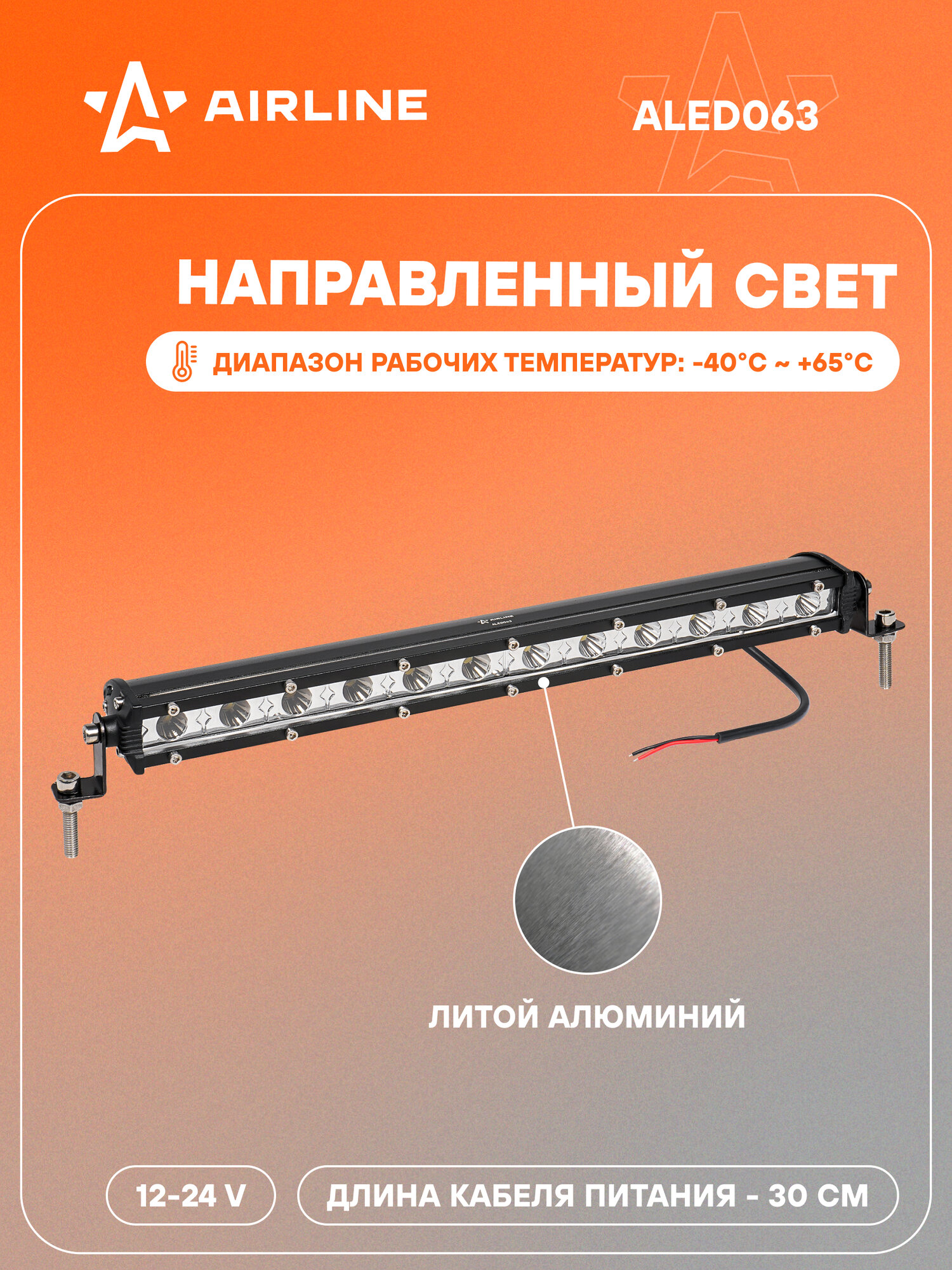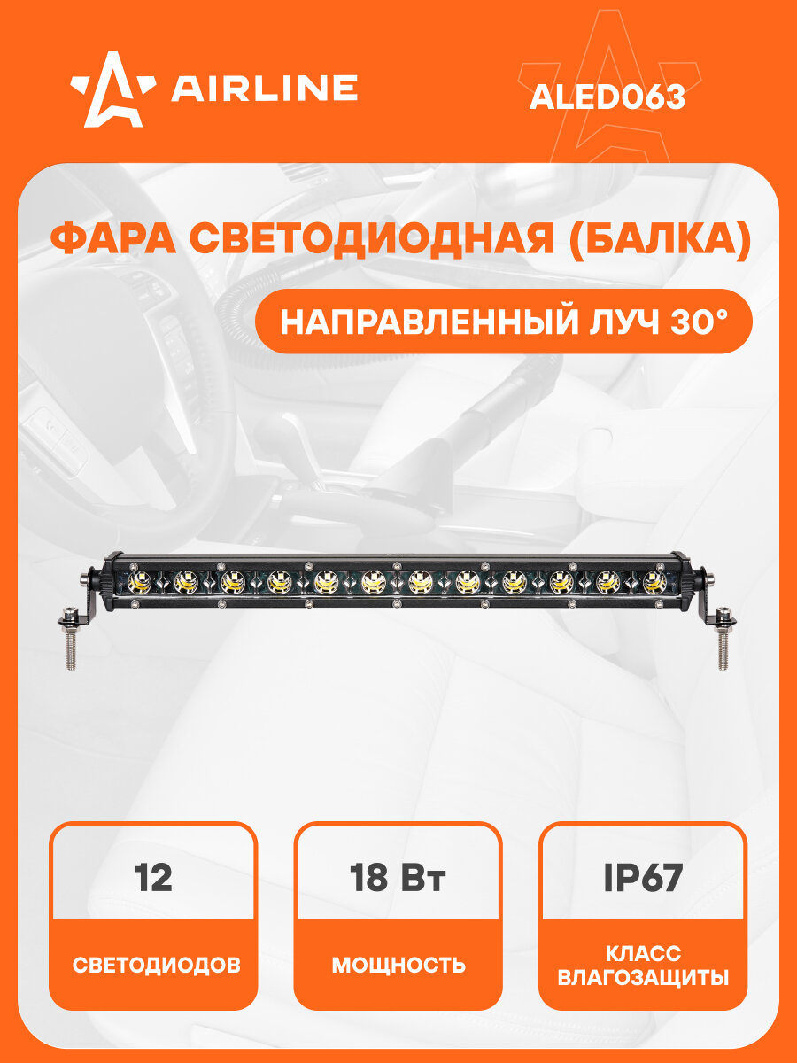 Балка светодиодная на автомобиль однорядная, 12 LED, направленный свет, 343x30x47 мм 18 Вт 12/24 В AIRLINE ALED063: сравнение цен, характеристики, фото, актуальное наличие и цены.