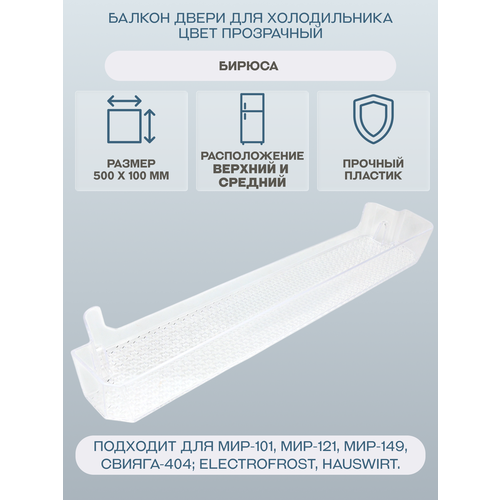 Купить Балкон (полка) двери для холодильника Бирюса 500х65, цвет прозрачный/0055000002 с доставкой по всей России. Балкон (полка) двери для холодильника Бирюса 500х65, цвет прозрачный/0055000002: сравнение цен, характеристики, фото, актуальное наличие и цены.
