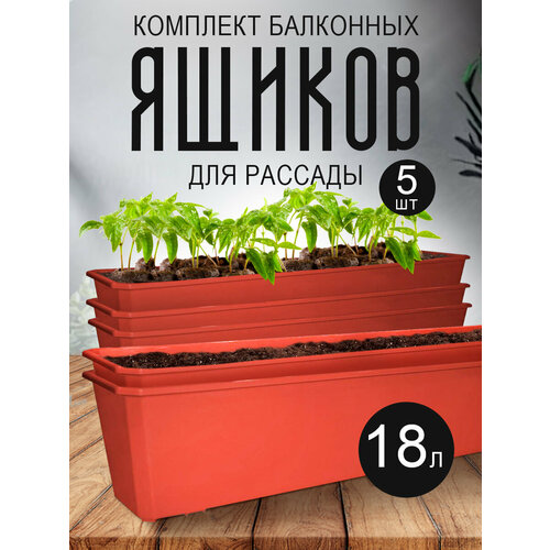 Балконный ящик InGreen для рассады и цветов пластиковый 18 л 5 шт, терракотовый 1804