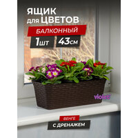 Купить Балконный ящик для цветов Ротанг 43см с дренажной вкладкой, цвет венге / горшок цветочный с доставкой по всей России.