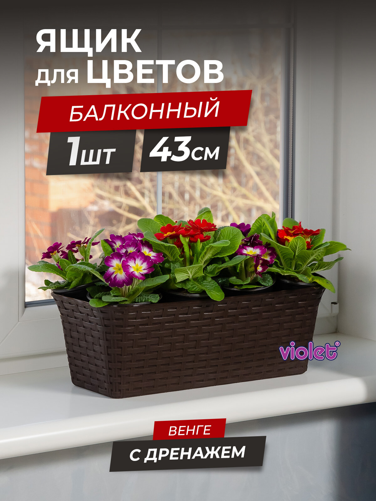 Балконный ящик для цветов Ротанг 43см с дренажной вкладкой, цвет венге / горшок цветочный: сравнение цен, характеристики, фото, актуальное наличие и цены.