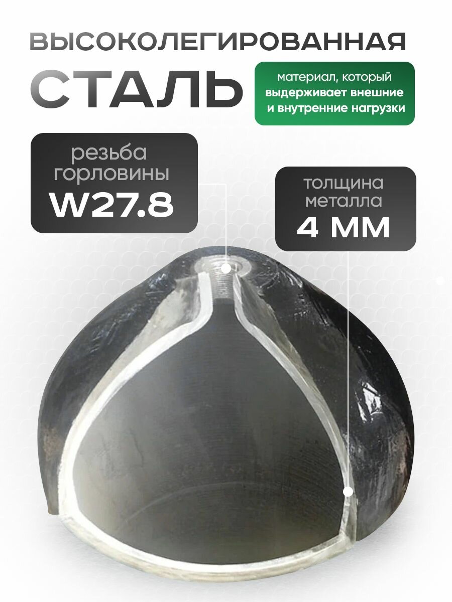 Баллон предназначен для хранения и транспортировки аргона. Изготовлен из высоколегированной стали, выдерживающей внешние и внутренние нагрузки, не нарушая первоначальных свойств содержимого баллона.