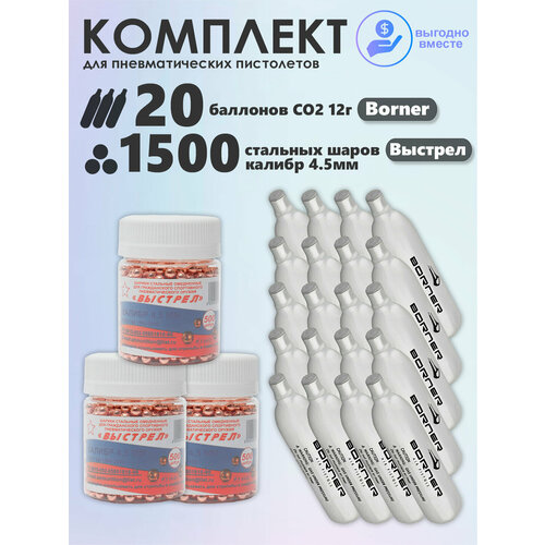Купить Баллончики CO2 20 шт Borner и шарики 1500 шт Выстрел набор для пневматики с доставкой по всей России. Баллончики CO2 20 шт Borner и шарики 1500 шт Выстрел набор для пневматики: сравнение цен, характеристики, фото, актуальное наличие и цены.