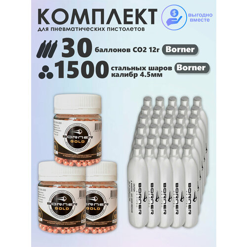 Купить Баллончики CO2 30 шт Borner и шарики 1500 шт Borner набор для пневматики с доставкой по всей России. Баллончики CO2 30 шт Borner и шарики 1500 шт Borner набор для пневматики: сравнение цен, характеристики, фото, актуальное наличие и цены.