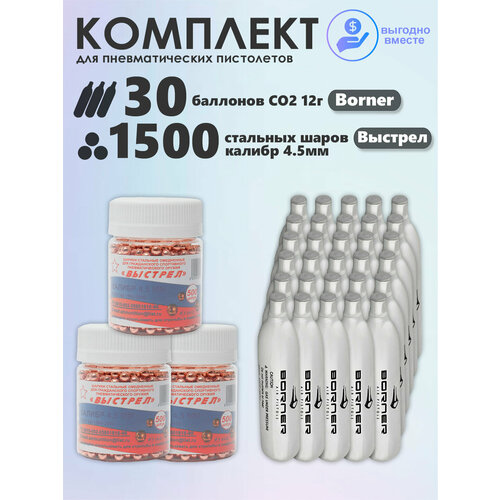 Купить Баллончики CO2 30 шт Borner и шарики 1500 шт Выстрел набор для пневматики с доставкой по всей России. Баллончики CO2 30 шт Borner и шарики 1500 шт Выстрел набор для пневматики: сравнение цен, характеристики, фото, актуальное наличие и цены.