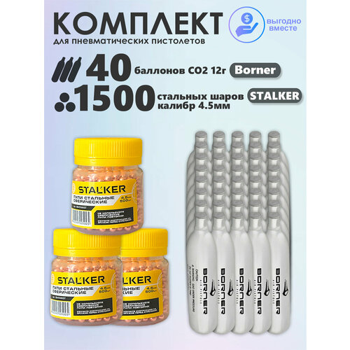 Купить Баллончики CO2 40 шт Borner и шарики 1500 шт Stalker набор для пневматики с доставкой по всей России. Баллончики CO2 40 шт Borner и шарики 1500 шт Stalker набор для пневматики: сравнение цен, характеристики, фото, актуальное наличие и цены.