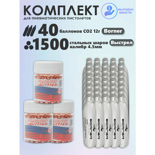 Купить Баллончики CO2 40 шт Borner и шарики 1500 шт Выстрел набор для пневматики с доставкой по всей России. Баллончики CO2 40 шт Borner и шарики 1500 шт Выстрел набор для пневматики: сравнение цен, характеристики, фото, актуальное наличие и цены.
