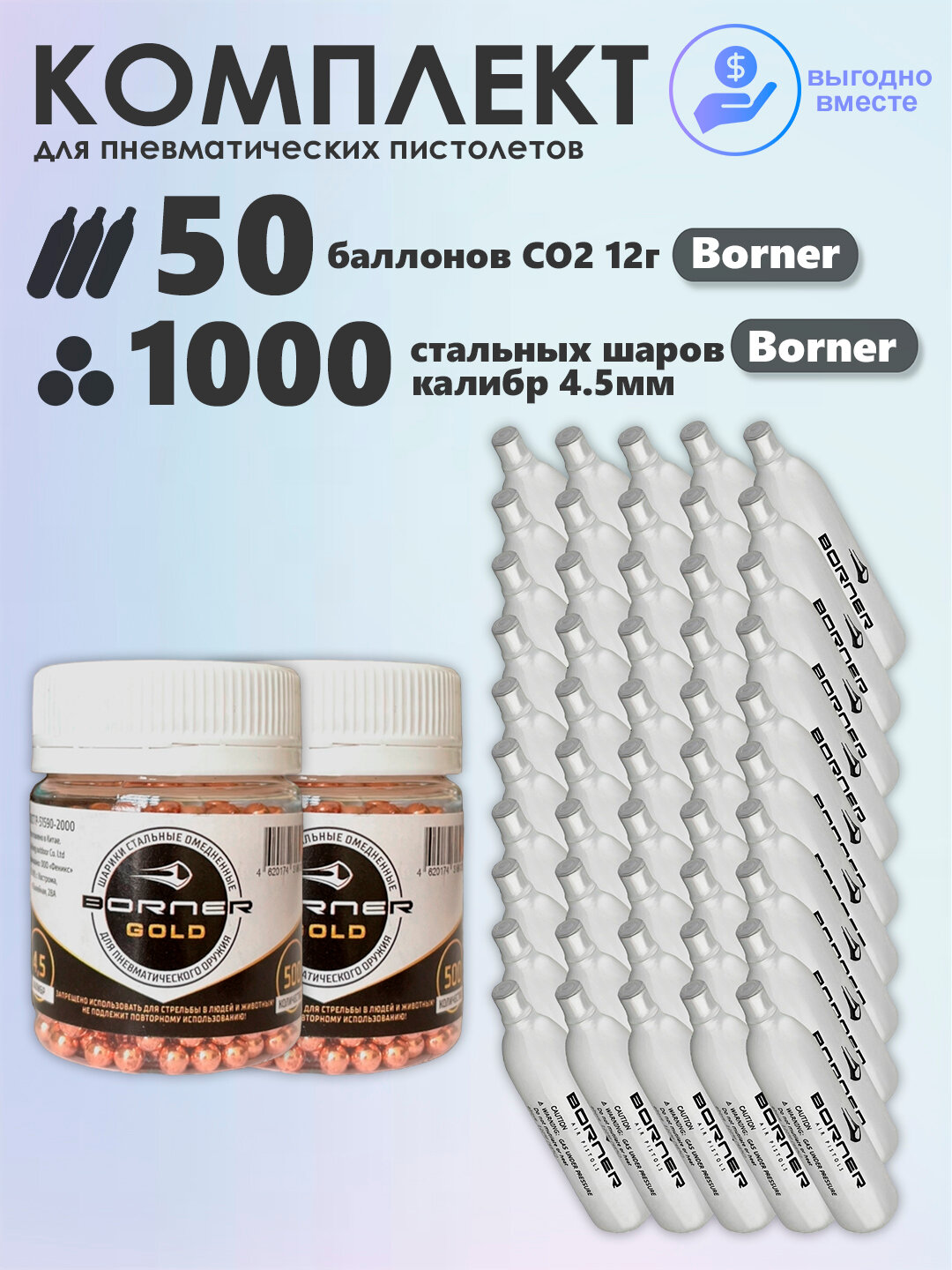 Купить Баллончики CO2 50 шт Borner и шарики 1000 шт Borner набор для пневматики с доставкой по всей России. Баллончики CO2 50 шт Borner и шарики 1000 шт Borner набор для пневматики: сравнение цен, характеристики, фото, актуальное наличие и цены.