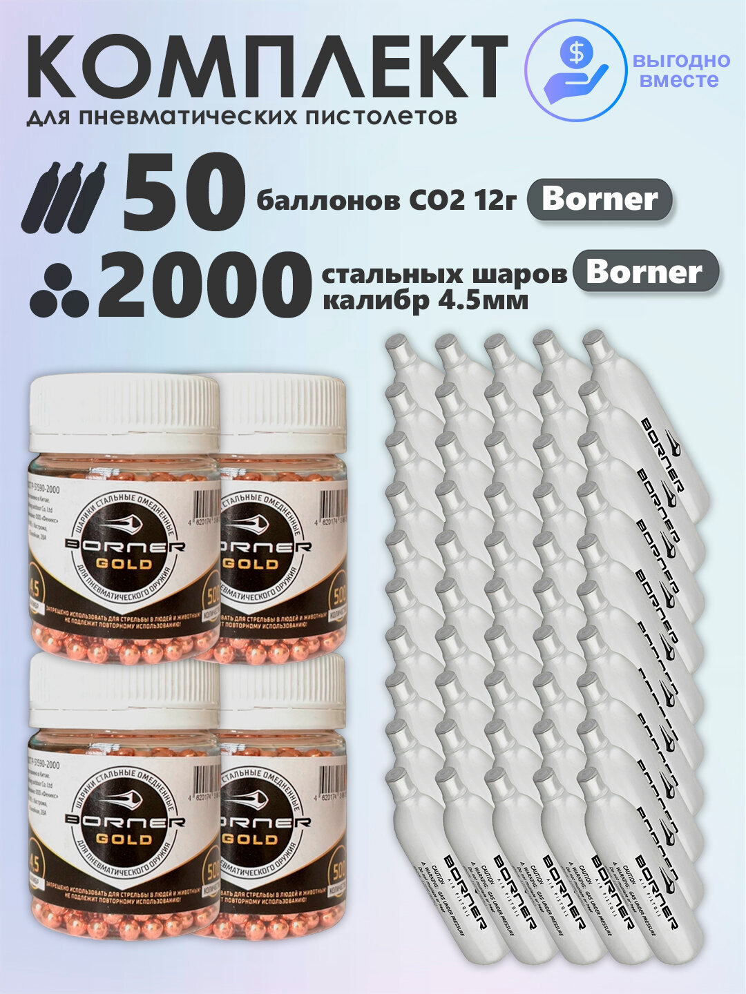 Купить Баллончики CO2 50 шт Borner и шарики 2000 шт Borner набор для пневматики с доставкой по всей России. Баллончики CO2 50 шт Borner и шарики 2000 шт Borner набор для пневматики: сравнение цен, характеристики, фото, актуальное наличие и цены.