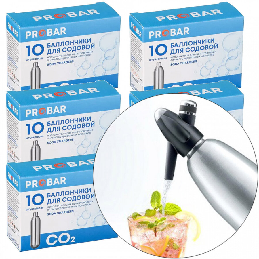Купить Баллончики для газирования воды PROBAR CO2 Soda Chargers 50 шт (5 уп x 10 шт) с доставкой по всей России.