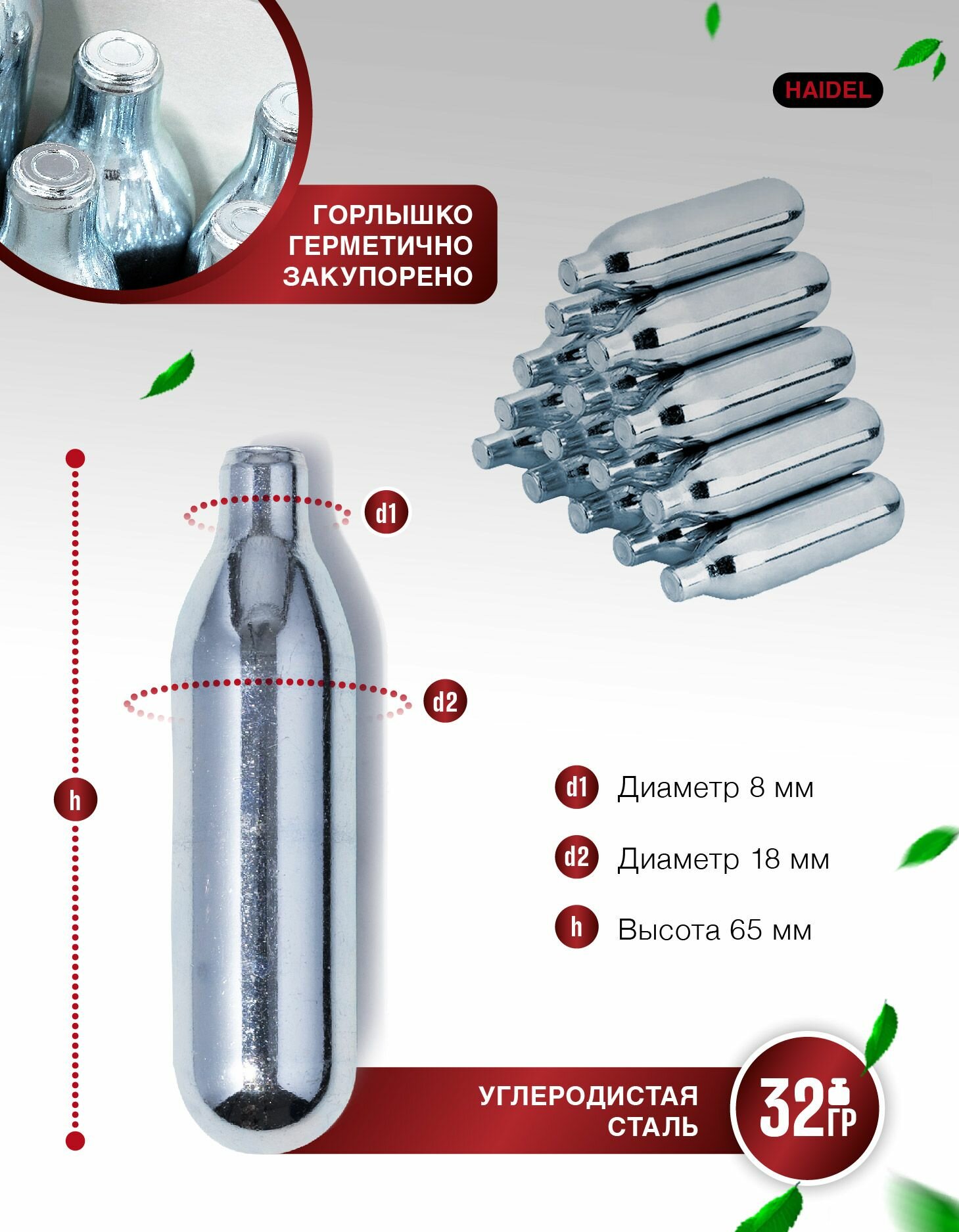 1. Данные баллончики заправлены пищевым углекислым газом CO2 (E290) высокой степени очистки (~99.95%).