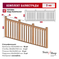 Комплект балюстрады балясины Скандинавия 3мп от компании StairShop.